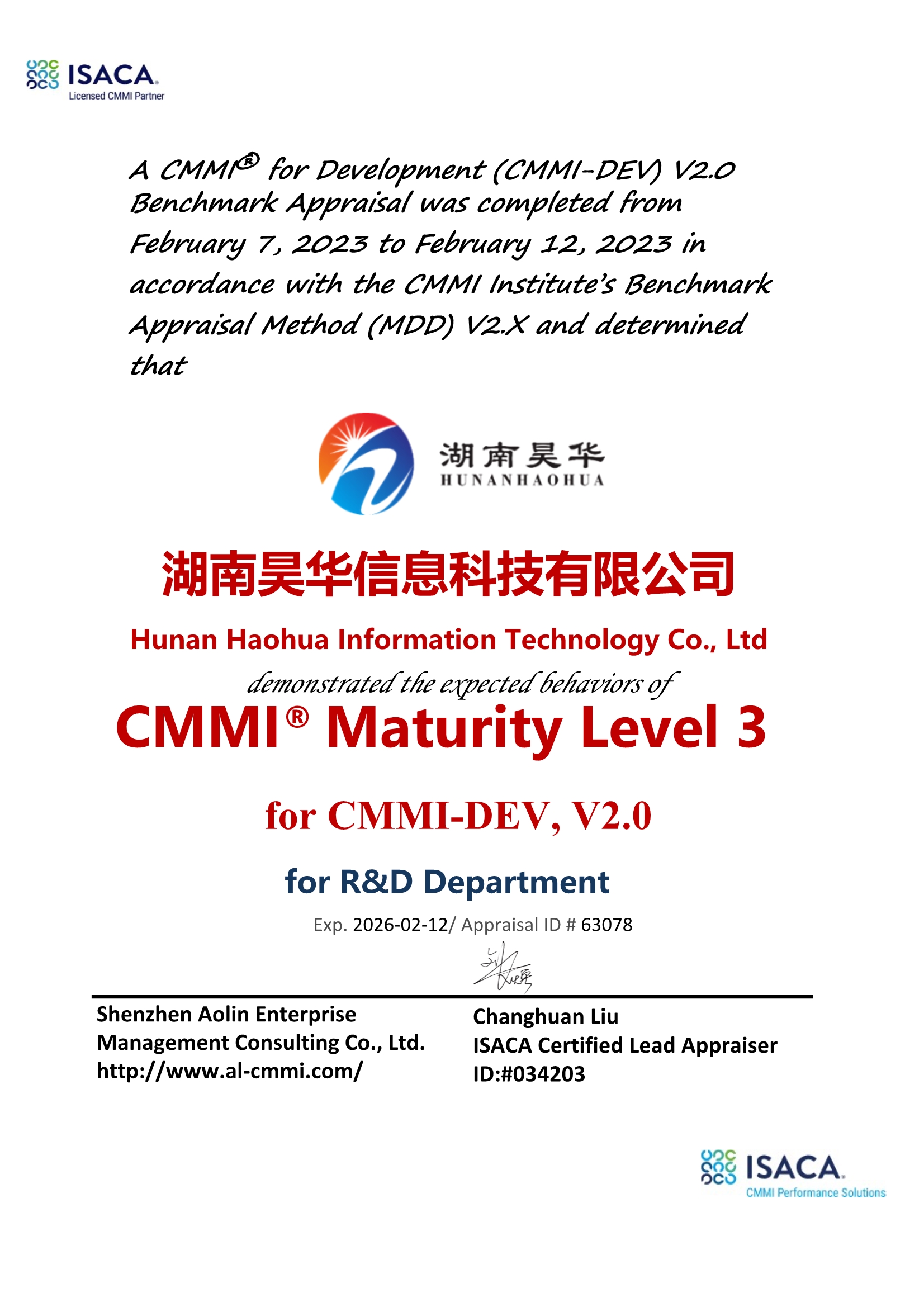 在数字化浪潮汹涌澎湃的当下,科技企业的每一次突破都备受瞩目。昊华迎来了一个振奋人心的时刻 —— 成功获得 CMMI3 证书!这不仅是对公司过往努力的高度肯定,更是公司发展历程中一座熠熠生辉的里程碑,为未来的征程照亮了前行的方向 ,也预示着公司将在软件研发和项目管理领域迈向更高的台阶。